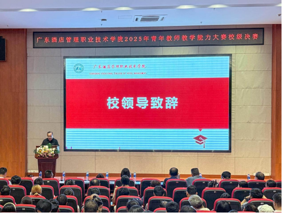 近日,广东酒店管理职业技术学院2025年青年教师教学能力大赛决赛在学校学术报告厅隆重举行。本次大赛以“深耕课堂 赋能未来”为主题,旨在提升教师教学水平,推动教育教学改革,为教师搭建展示与交流的平台。经二级学院选拔推荐,共有14位青年教师参加校级总决赛,参赛教师根据抽签决定的比赛顺序依次登台竞技。经过激烈角逐,马克思主义学院刘伟康老师荣获一等奖,温慧莹等2名教师荣获二等奖,莫丹丹等3名教师荣获三等奖。